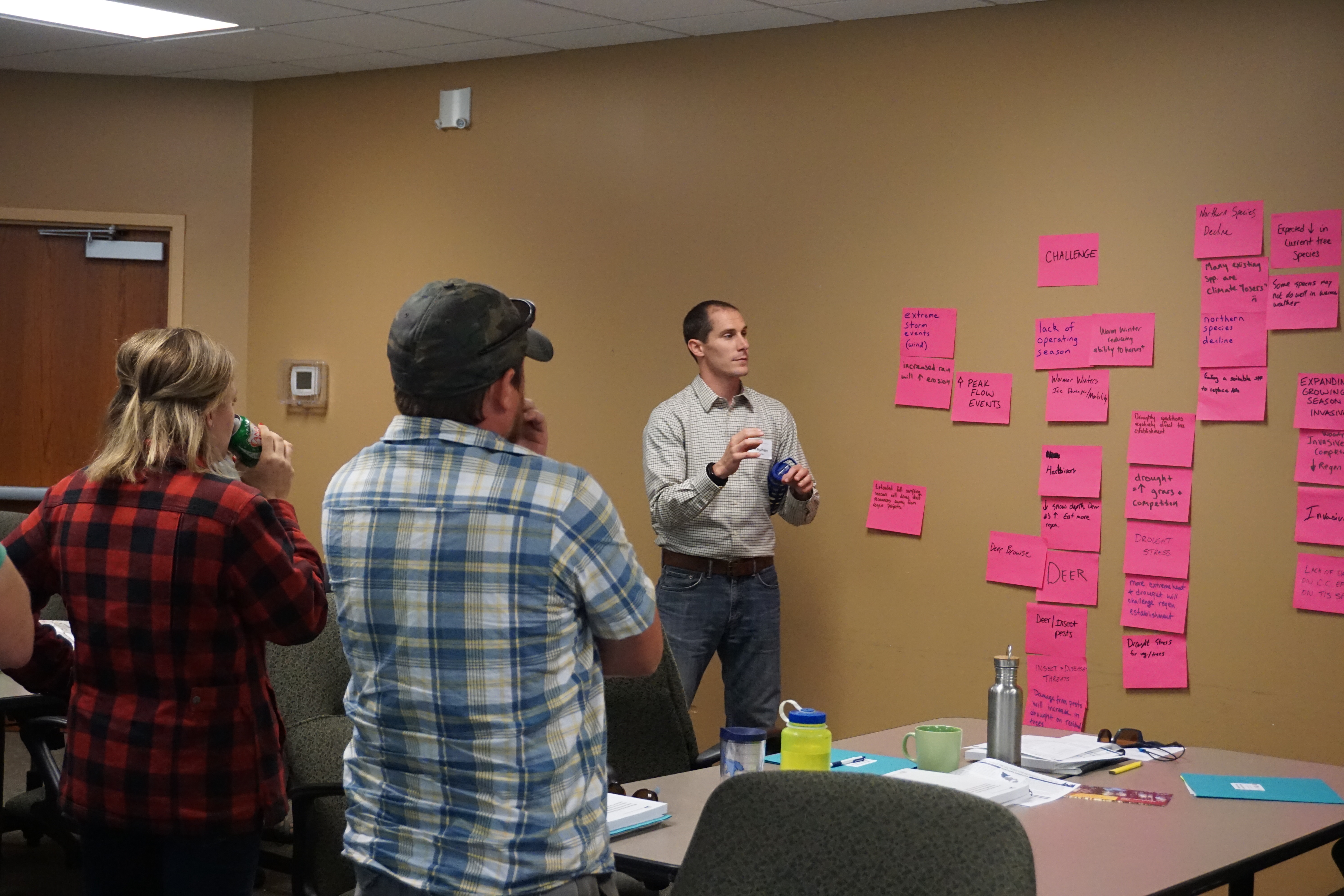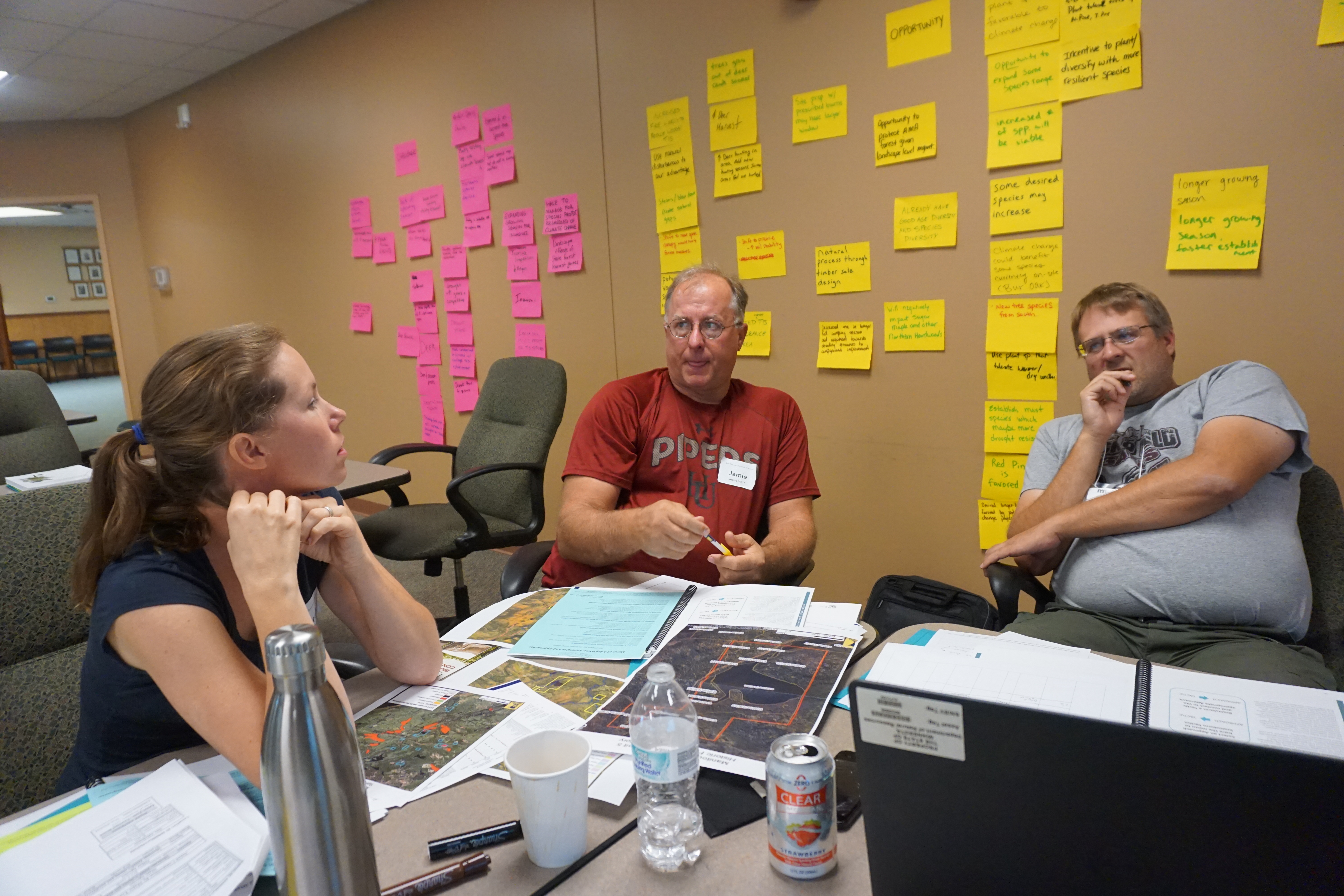This workshop was designed to help Minnesota DNR employees incorporate climate change into natural resources management. Specifically, participants are provided with training on climate change effects on forest ecosystems and forested watersheds, and also on how to develop customized actions to adapt and prepare for change. The course uses the Adaptation Workbook process to consider how climate change may affect a real‐world land management project, identify challenges and opportunities for management under a changing climate, and develop actions to reduce risk and increase the ability of forests and watersheds to cope with change.